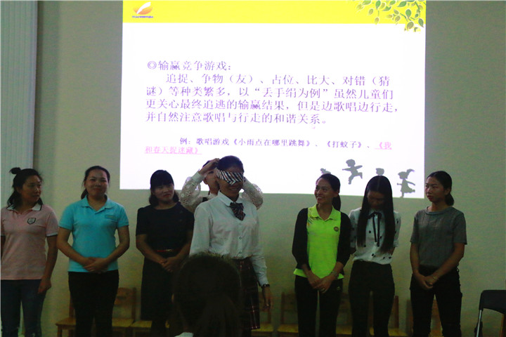 深圳市遠(yuǎn)恒佳教育集團(tuán)學(xué)前教育管理中心教研員,深圳市學(xué)前教育專業(yè)委員會第二屆骨干講師團(tuán)講師萬婷婷老師現(xiàn)場指導(dǎo)老師們運(yùn)用音樂游戲創(chuàng)編策略,設(shè)計(jì)更貼近幼兒本性的歌唱游戲; 通過歌唱游戲?qū)嵗?,引領(lǐng)老師們簡單重復(fù)、潛心體會、簡便低耗、循環(huán)漸進(jìn)、合拍合樂等歌唱游戲的創(chuàng)編原則。