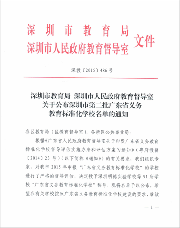 深圳市龍華中英文實(shí)驗(yàn)學(xué)校榮獲“廣東省義務(wù)教育標(biāo)準(zhǔn)化學(xué)校”稱號(hào)