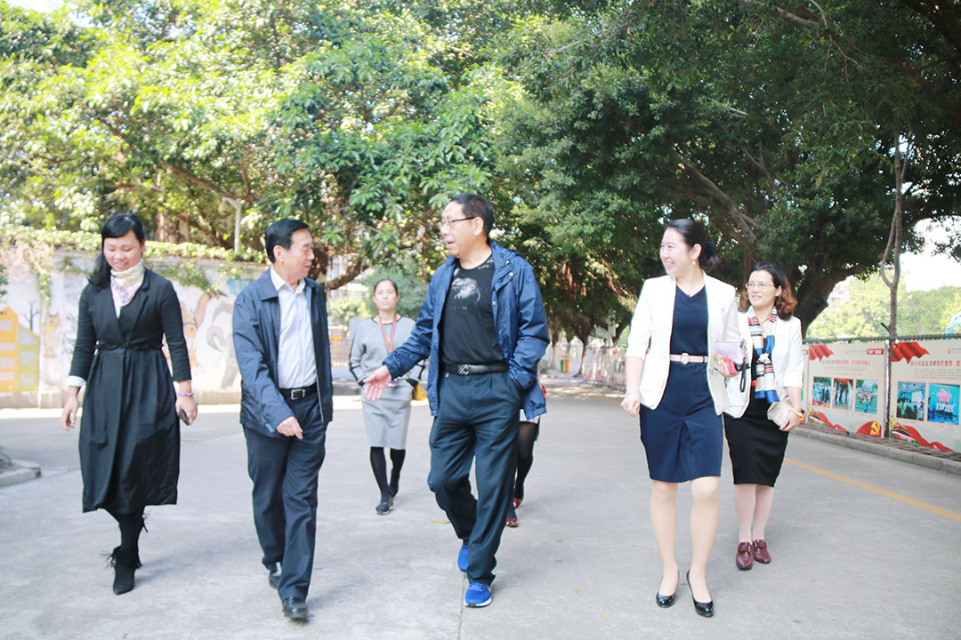 接著,王教授一行來到龍華中英文實(shí)驗(yàn)學(xué)校參觀,在卜祥林校長的帶領(lǐng)下,王教授一行興致勃勃的參觀了學(xué)校素質(zhì)教育成果展示區(qū)、社會(huì)資源中心、國際交流中心等地,詳細(xì)了解了學(xué)校國際化教育發(fā)展情況。王教授對(duì)學(xué)校的辦學(xué)特色和辦學(xué)理念非常認(rèn)可,希望學(xué)校越辦越好,培養(yǎng)出更多優(yōu)秀學(xué)子。