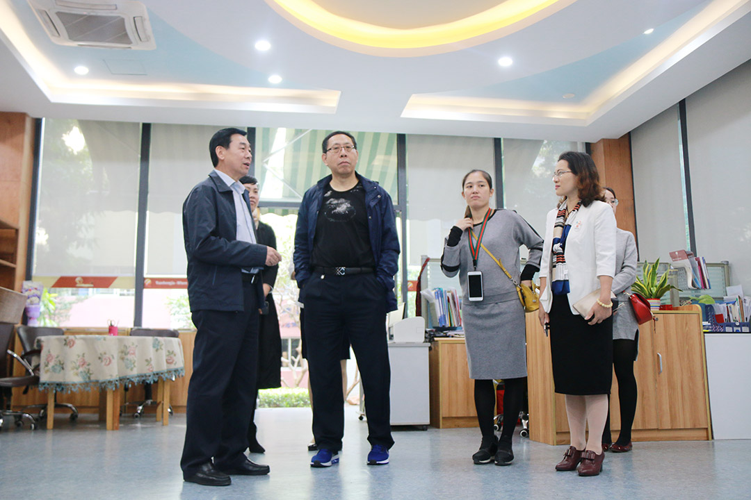 在早教公司負(fù)責(zé)人劉秋月、部長車家瓊的陪同下,王教授一行首先參觀了遠(yuǎn)恒佳早教丹楓雅苑中心。在參觀過程中,中心負(fù)責(zé)人劉林主任向王教授詳細(xì)介紹了中心的運(yùn)營、教師配置、課程特色和設(shè)備設(shè)施配置等情況。王教授對(duì)中心的發(fā)展給予充分肯定,并提出了寶貴的意見和建議。