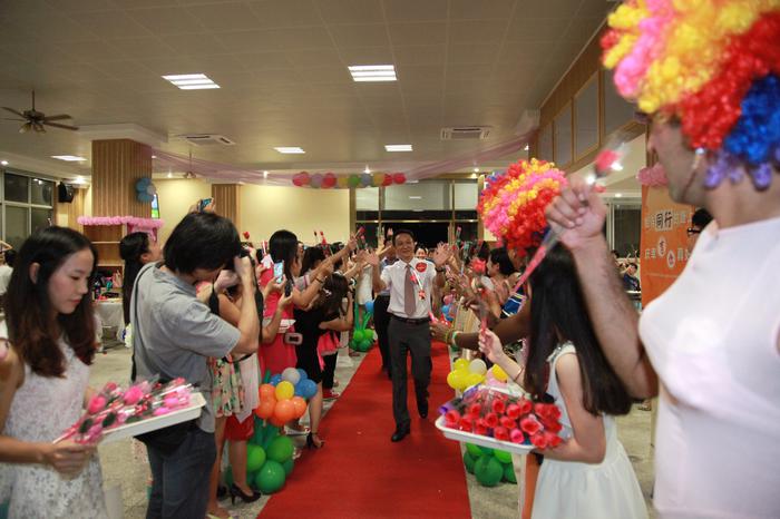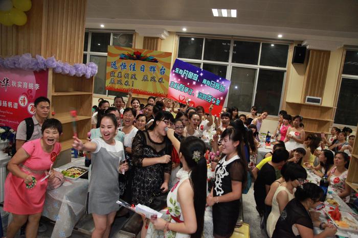 以“堅定尋夢之履,同賀幸福人生”為主題的第30次教師節(jié)慶?;顒釉诩瘓F董事會的親自組織領導下,盛況空前,創(chuàng)意無限,充分顯現(xiàn)了尊尚師風,以師為本的管理理念?;顒右愿餍@教師有序的“紅毯秀” 隆重拉開了序幕,用老師們的話說“今天當了一次明星,還有董事長和校領導親自鞠躬贈送鮮花,備受尊榮和感動”。當晚慶?;顒有问蕉鄻?,不拘一格,大家品著香檳、吃著點心,載歌載舞、笑語歡騰。特別是龍華中英文實驗幼兒園的外教男老師們的幽默反串,其花姿招展、故炫妖媚之態(tài),為會場增添不少亮色,讓老師們歡笑不斷;龍華校高中美術教師趙海鵬,揮毫潑墨創(chuàng)作了8幅書法長匾,現(xiàn)場贈送給龍華校,陣陣翰墨書香飄蕩著遠恒佳人對學校的濃濃深情,讓人肅然起敬。還有其他校園帶來的充滿活力與激情的歌舞、充分彰顯了遠恒佳人的多才多藝、陽光與智慧?;顒釉诟餍@的歌手們自由點歌放歌中,在領導老師們的群舞歡騰中圓滿結束。
