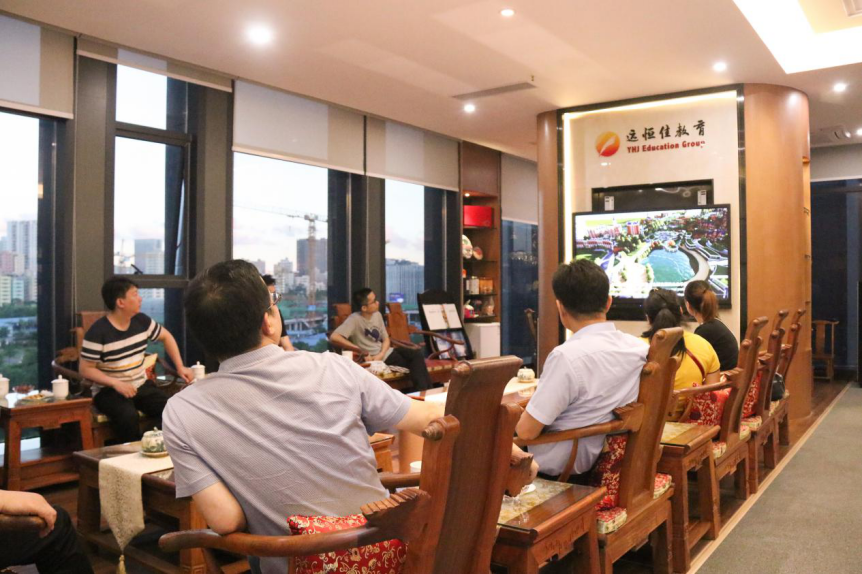 考察團(tuán)先后參觀考察了位于總部附近的遠(yuǎn)恒佳培訓(xùn)學(xué)?!埲A教育城:美術(shù)培訓(xùn)中心、音樂(lè)培訓(xùn)中心、早教中心,遠(yuǎn)恒佳倍得分線上教育平臺(tái)研發(fā)中心,國(guó)際交流中心,最后來(lái)到集團(tuán)總部參觀并進(jìn)行座談交流研討。