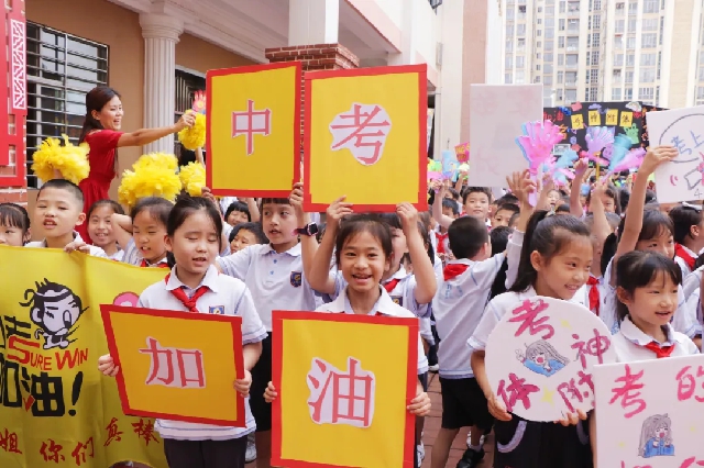 距離下屆中考最近的八年級組:“中考到,好運緊跟你,高分沒問題!中考到,祝福不停息,一切皆順利!中考加油,中英文最牛!”