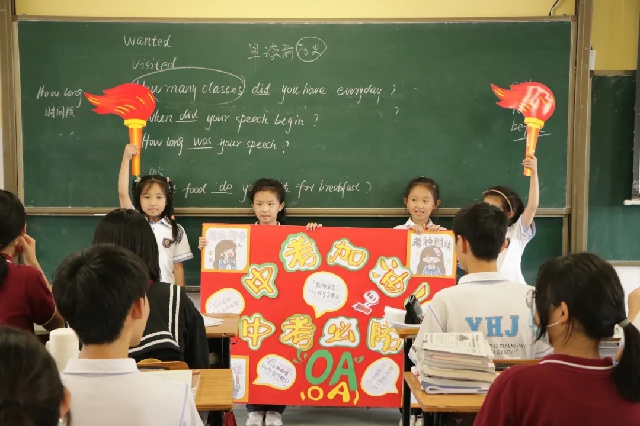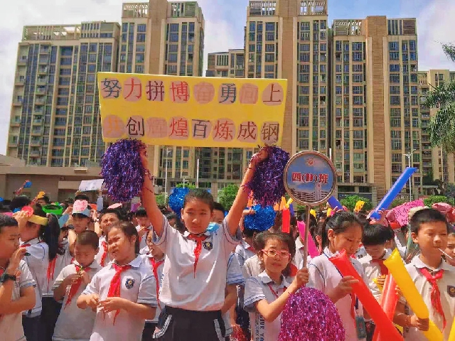 首先是四、五年級組:“努力拼搏,奮勇向上!百煉成鋼,共創(chuàng)輝煌!”