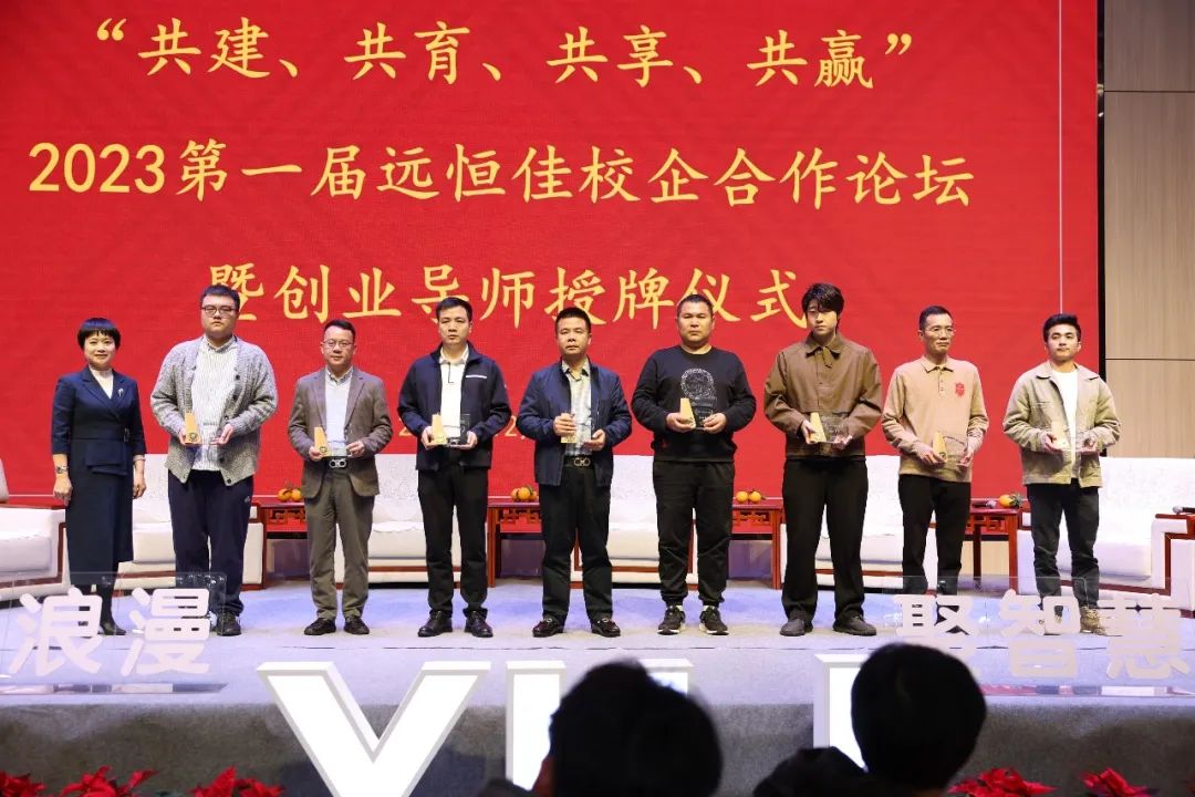 遠(yuǎn)恒佳現(xiàn)代產(chǎn)業(yè)學(xué)院首創(chuàng)了公司制職業(yè)教育模式,學(xué)生組建28人創(chuàng)業(yè)小組,成立了創(chuàng)業(yè)公司,通過企業(yè)課堂、企業(yè)家大講堂、公司例會(huì)和創(chuàng)業(yè)實(shí)踐項(xiàng)目等,開展創(chuàng)新創(chuàng)業(yè)學(xué)習(xí)實(shí)踐。為更好地實(shí)施公司制教育模式,本屆論壇聘任了40位企業(yè)家擔(dān)任創(chuàng)業(yè)導(dǎo)師,隆重舉行創(chuàng)業(yè)導(dǎo)師授牌儀式。遠(yuǎn)恒佳教育集團(tuán)宋遠(yuǎn)標(biāo)董事長、麥麗芬副董事長向創(chuàng)業(yè)導(dǎo)師們頒發(fā)了導(dǎo)師牌匾。