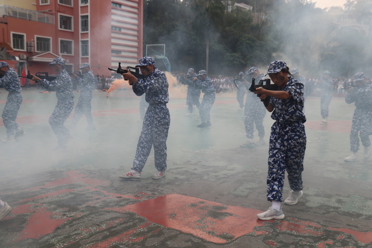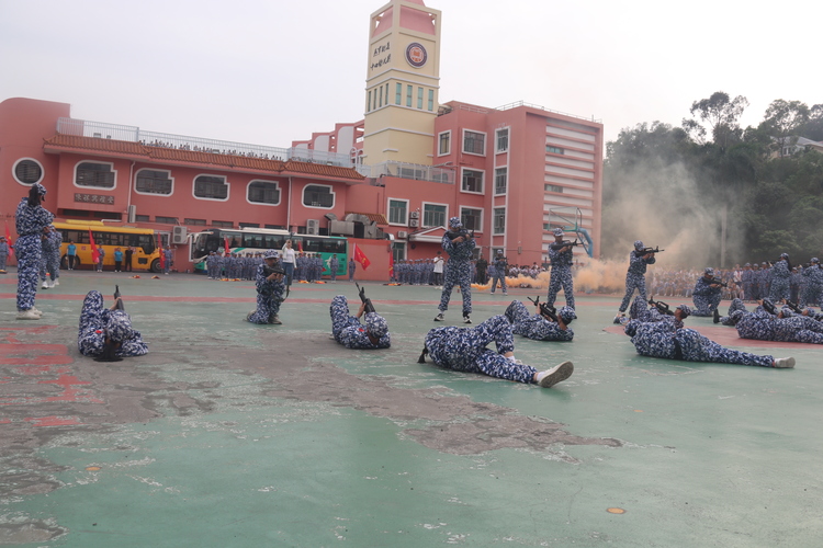 整齊肅穆的方陣、氣勢磅礴的口號、剛勁有力的擺臂、步調(diào)一致的踢腿,舉手投足間,既透出軍人堅(jiān)毅果敢的氣質(zhì),又彰顯著標(biāo)尚學(xué)子昂揚(yáng)向上的精神風(fēng)貌,贏得了在場領(lǐng)導(dǎo)、教師和家長的陣陣掌聲。