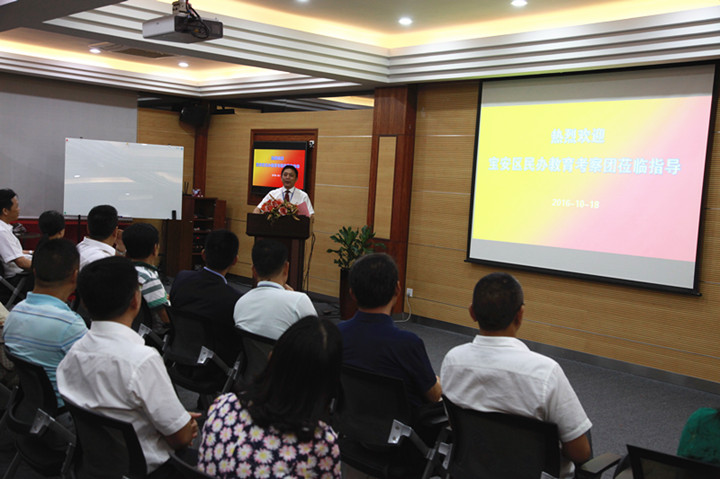 2016年10月18日,寶安區(qū)民辦教育協(xié)會一行40多人,在林良浩會長、鐘慶祥秘書長帶領(lǐng)下,來到深圳市龍華中英文實驗學(xué)校參觀考察“教育國際化特色”建設(shè)情況。